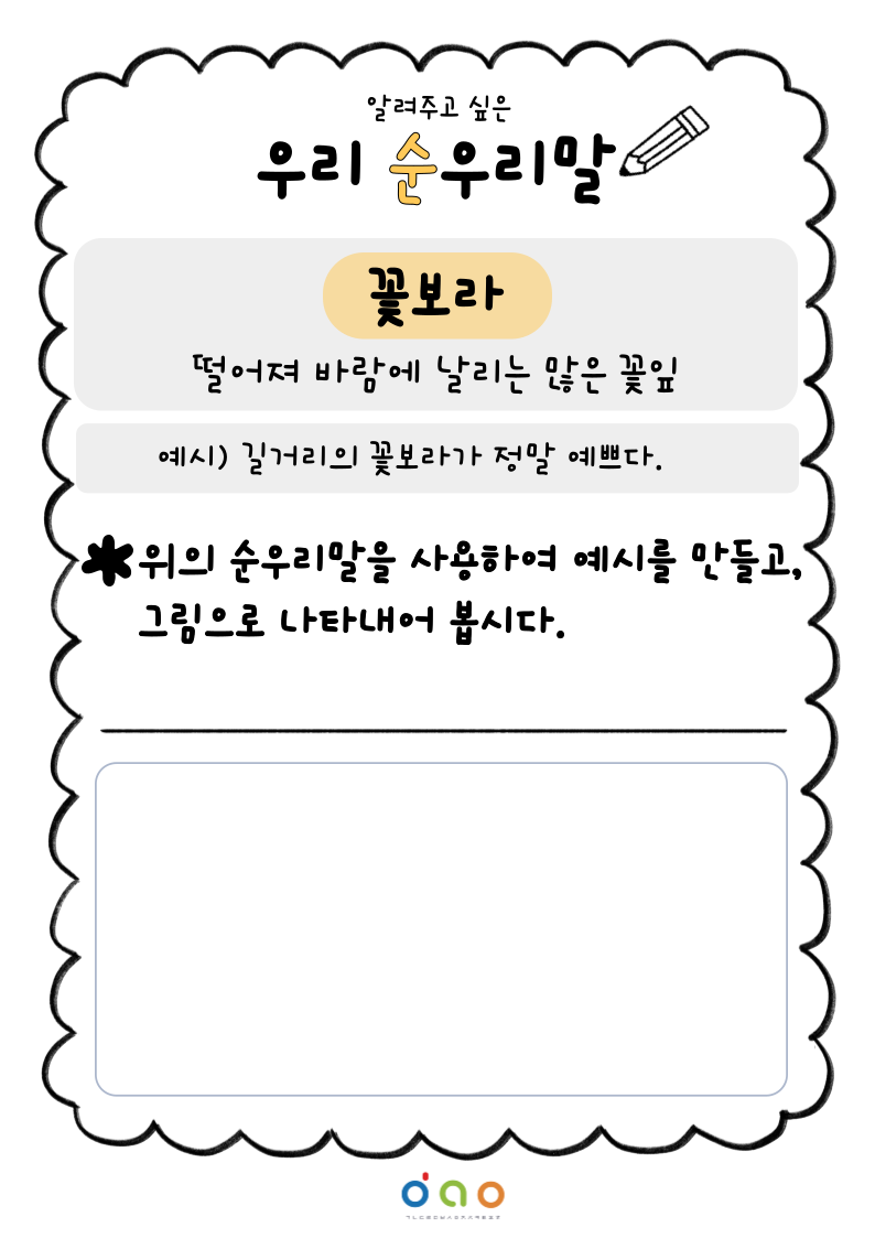 [알려주고 싶은 우리 '순우리말']에서는 소개해드리고 싶은 예쁜 순우리말에 대해서 소개해드리겠습니다😊