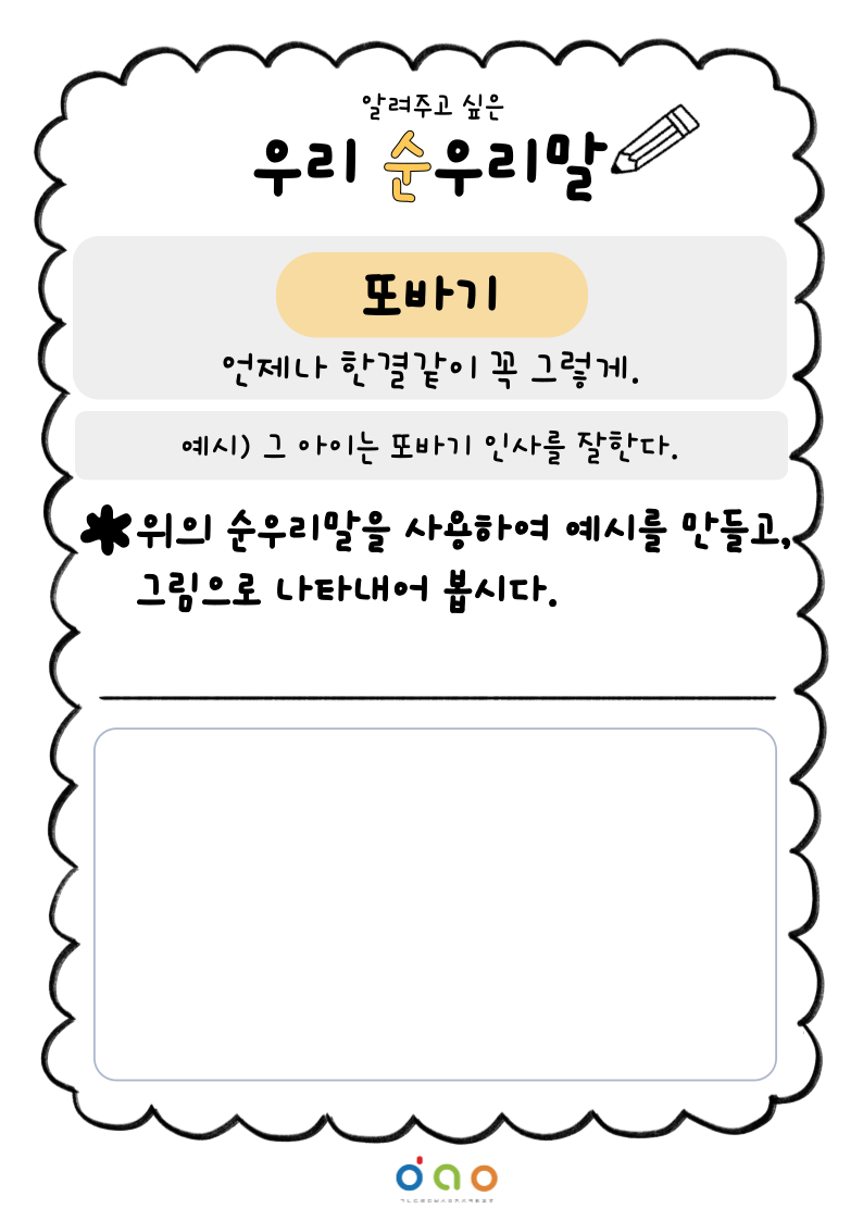 순우리말의 뜻을 알아보고, 배운 말을 사용하여 예시를 만든 후 그림으로 나타내어 봅시다!