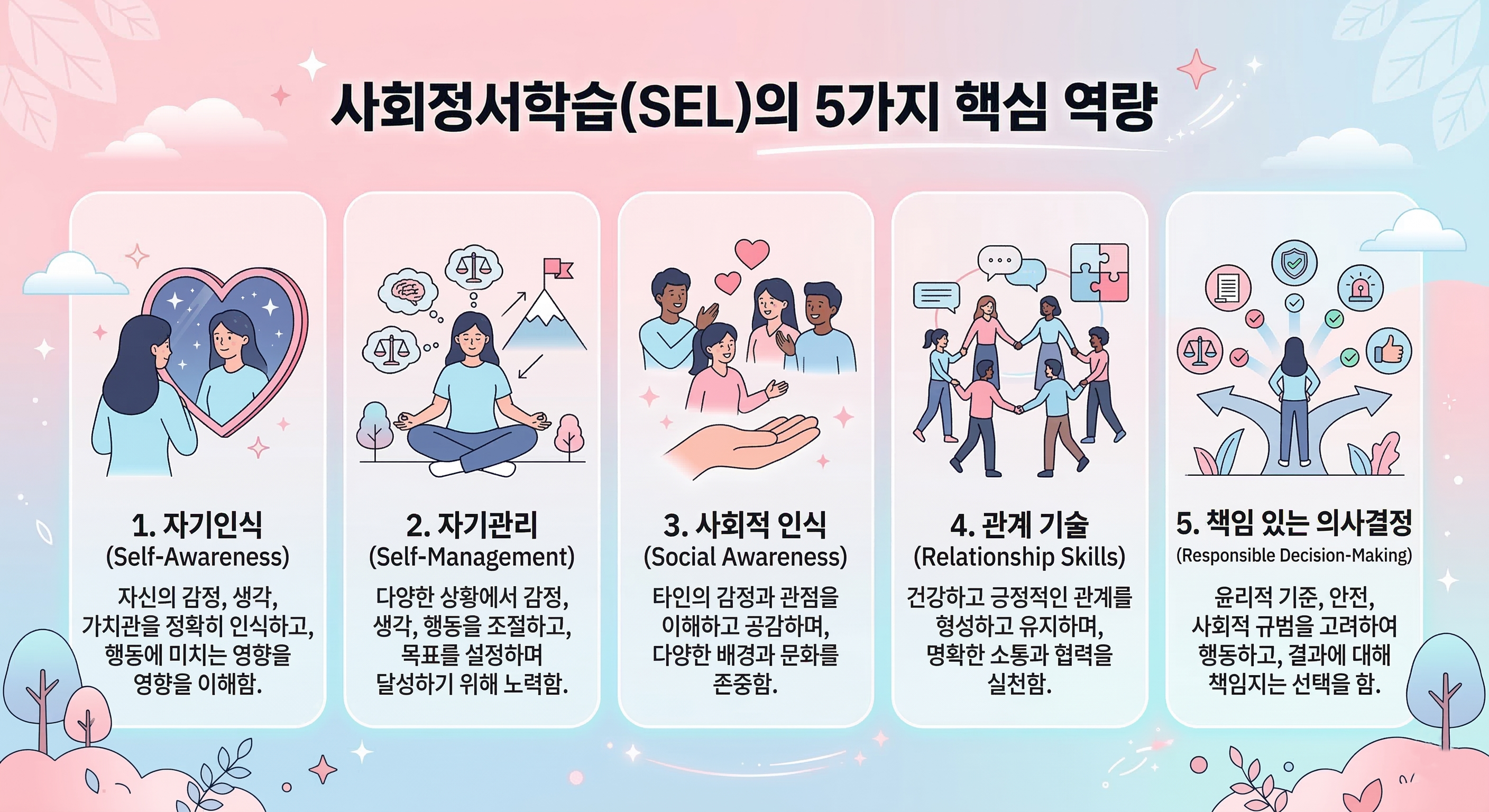 [사회정서학습으로 한국어 배우기]에서는 사회정서학습의 5가지 역량을 바탕으로