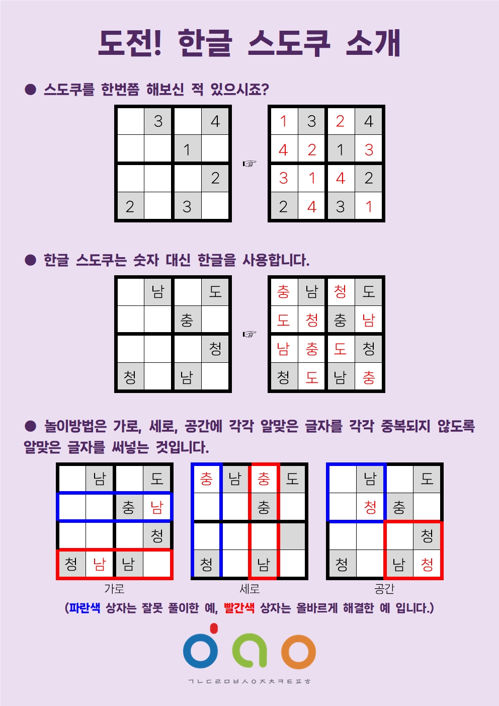 재미있는 한글 스도쿠 놀이로 한글 단어를 익혀 봅시다.